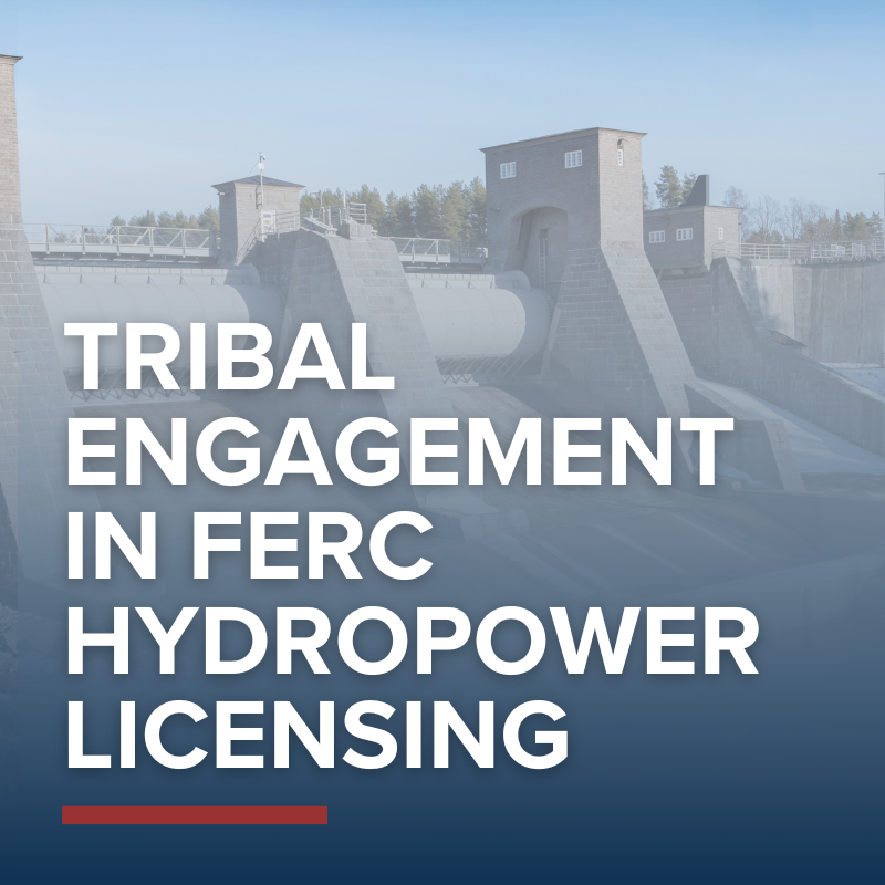 This article will provide an overview of the Federal Energy Regulatory Commission (FERC or Commission) hydropower licensing process, focusing on leverage points for Tribal engagement. Following a brief introduction on the relationship between Tribal Nations, hydropower dams, and FERC licensing, the first section provides a general description of FERC’s authority and structure, followed by a second section outlining the timeline of a FERC hydropower licensing process and how Tribal Nations can participate in these processes. The third section highlights several strategies for protecting Tribal rights and resources. The final section briefly addresses other important federal and state agencies involved in FERC licensing proceedings and how Tribal Nations may work with those agencies to accomplish their goals. This overview is not intended to discuss all the opportunities and challenges facing Tribal Nations in hydropower licensing processes, but instead to provide a starting point for Tribal Nations seeking to engage.